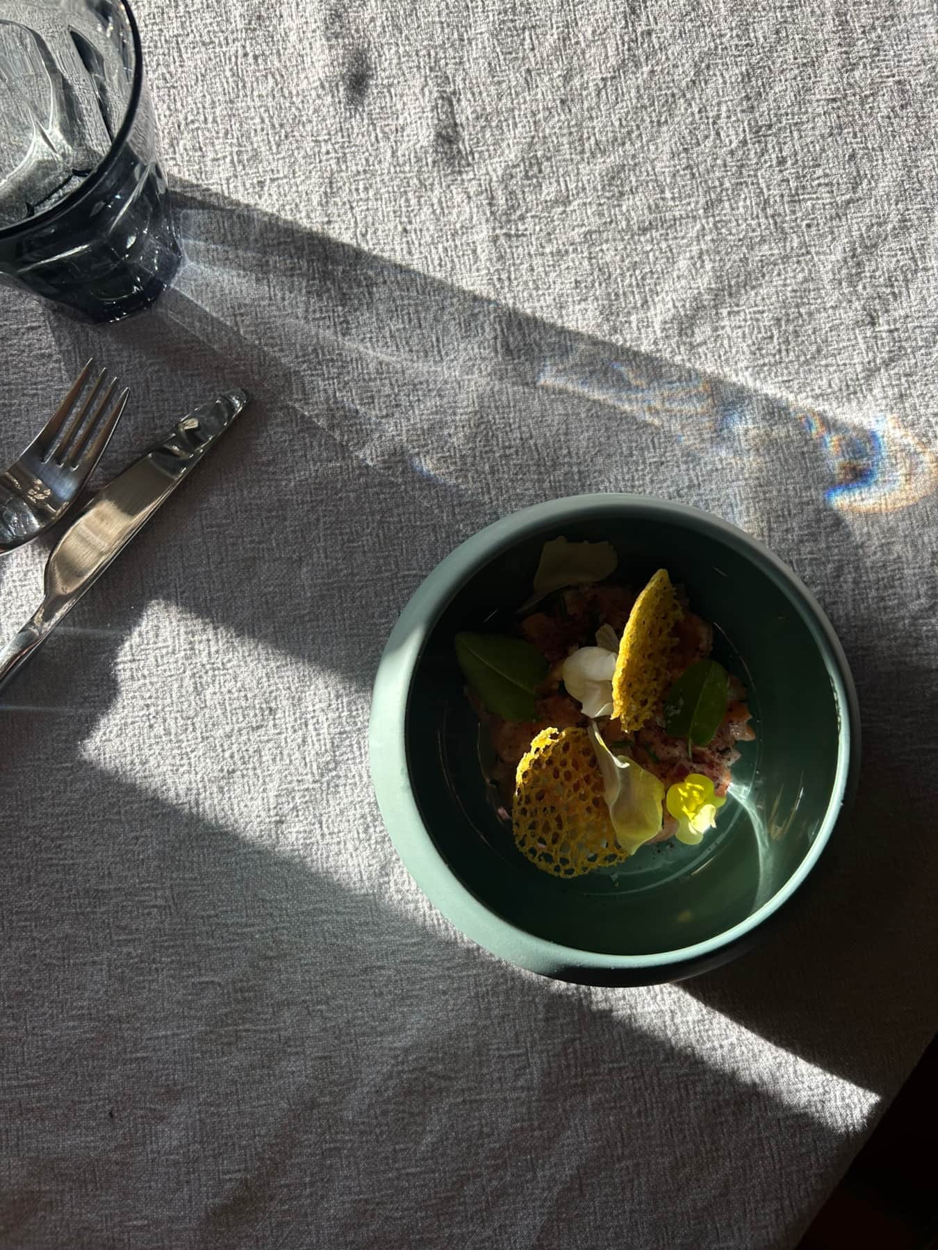 Je vous prépare un menu sur mesure, selon vos envies, la saison et les produits locaux. Le dîner est servi à table, comme au restaurant, mais dans une ambiance plus personnelle et détendue. Entrée, plat, dessert, tout est pensé pour un moment agréable et délicieux.